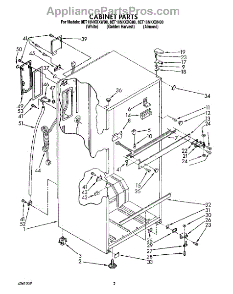 Parts for Whirlpool 8ET18NKXXN00: 02 - Cabinet Parts