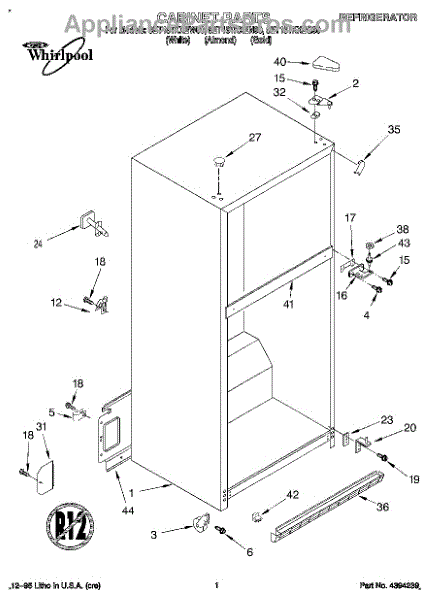 Parts for Whirlpool 8ET18TKXEN00: 01 - Cabinet Parts
