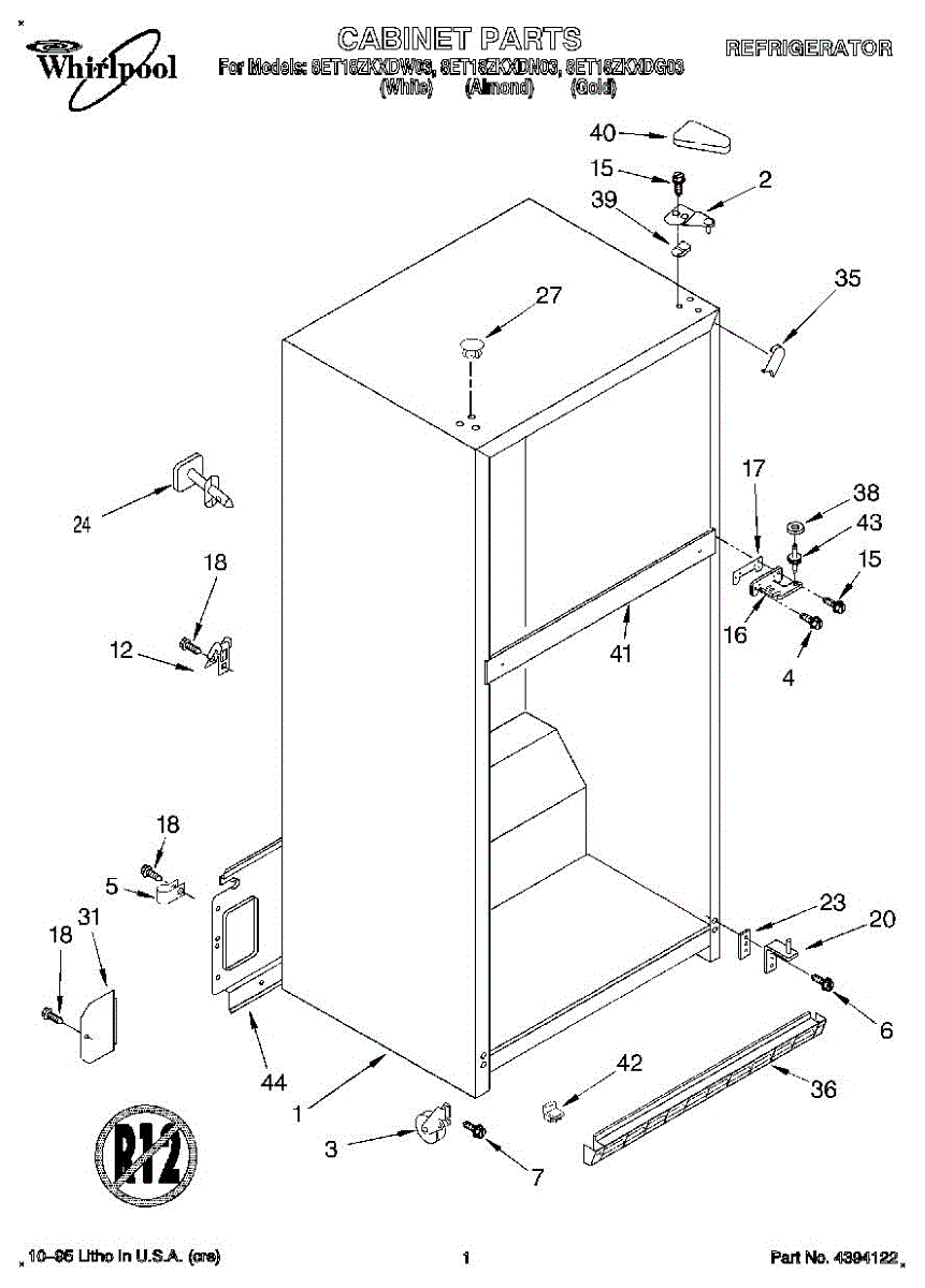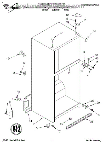 Parts for Whirlpool 8ET18ZKXDG03: 01 - Cabinet Parts