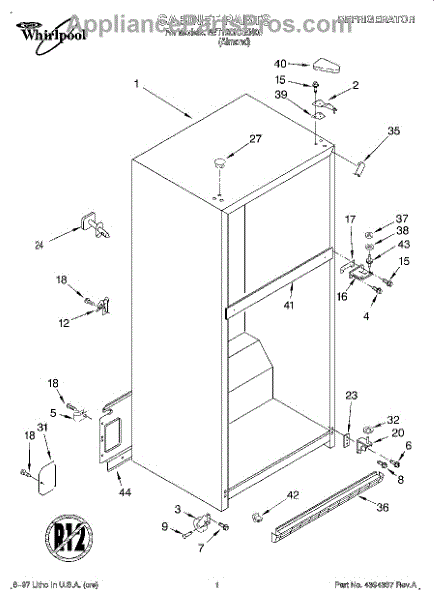 The Hinge Washer is an OEM replacement part for Whirlpool refrigerators. This small washer plays a supports the refrigerator door hinge assembly. Center hinge plastic washer. Causes of a bad hinge washer are generally normal wear and tear from extensive use. As the washer absorbs pressure each time the door is opened or closed, it can gradually deteriorate or crack. Physical damage is also possible if the door is accidentally struck or slammed. Symptoms of a worn or damaged hinge washer include: