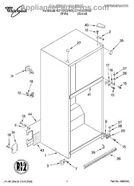 The Hinge Washer is an OEM replacement part for Whirlpool refrigerators. This small washer plays a supports the refrigerator door hinge assembly. Center hinge plastic washer. Causes of a bad hinge washer are generally normal wear and tear from extensive use. As the washer absorbs pressure each time the door is opened or closed, it can gradually deteriorate or crack. Physical damage is also possible if the door is accidentally struck or slammed. Symptoms of a worn or damaged hinge washer include: