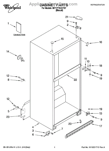 The Hinge Washer is an OEM replacement part for Whirlpool refrigerators. This small washer plays a supports the refrigerator door hinge assembly. Center hinge plastic washer. Causes of a bad hinge washer are generally normal wear and tear from extensive use. As the washer absorbs pressure each time the door is opened or closed, it can gradually deteriorate or crack. Physical damage is also possible if the door is accidentally struck or slammed. Symptoms of a worn or damaged hinge washer include:
