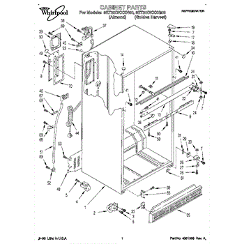 This cabinet roller assembly supports the refrigerator at the base and lets you roll the unit forward for cleaning or service. Replace a cracked or seized roller to restore smooth movement and a stable, level stance. What it does: