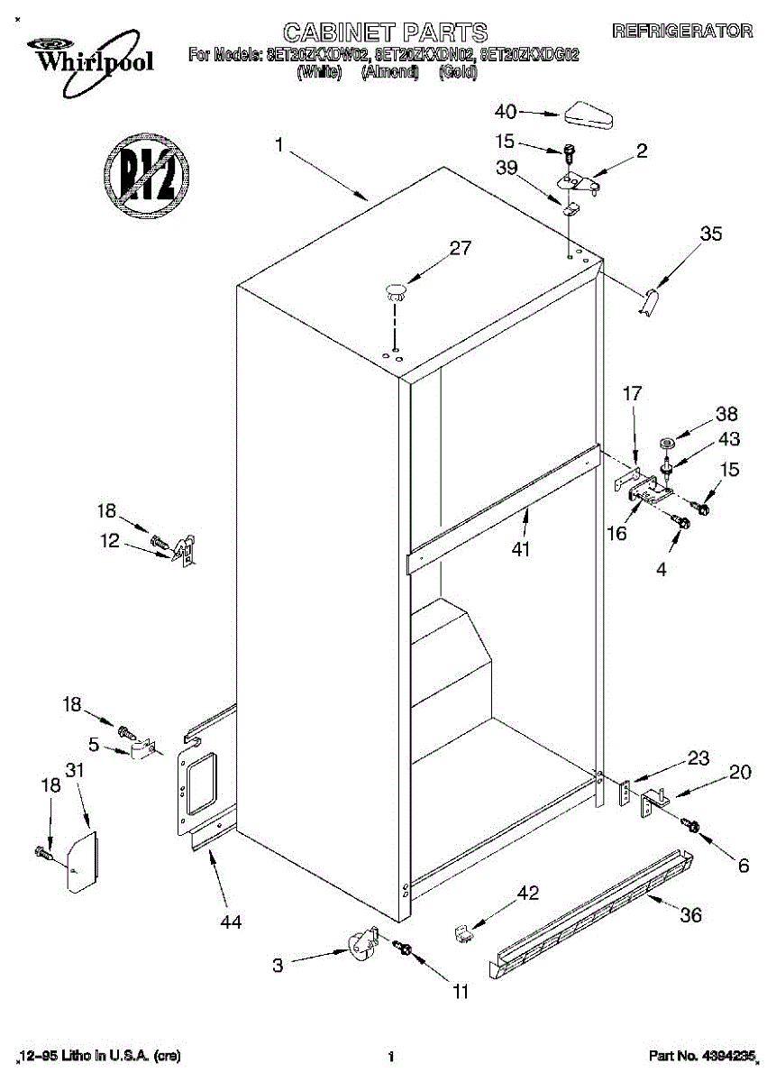 Parts for Whirlpool 8ET20ZKXDW02: 01 - Cabinet Parts