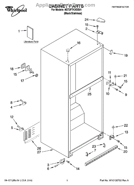 Repair manual for refrigerators and freezers made by Whirlpool. Covered brands include Whirlpool, Sears, Kenmore, Kitchen Aid, Roper, and Estate. Easy to follow photographs and step-by-step repair procedures.