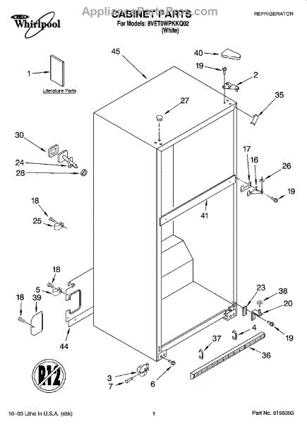 Repair manual for refrigerators and freezers made by Whirlpool. Covered brands include Whirlpool, Sears, Kenmore, Kitchen Aid, Roper, and Estate. Easy to follow photographs and step-by-step repair procedures.