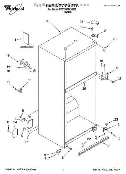 Repair manual for refrigerators and freezers made by Whirlpool. Covered brands include Whirlpool, Sears, Kenmore, Kitchen Aid, Roper, and Estate. Easy to follow photographs and step-by-step repair procedures.