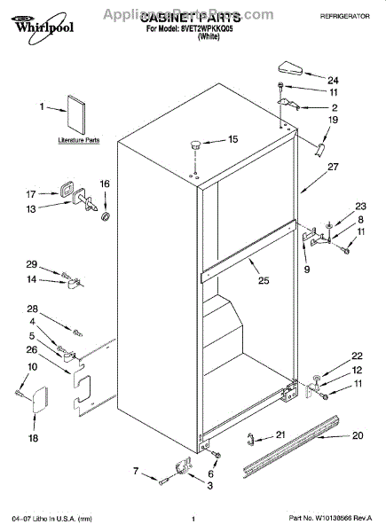 Repair manual for refrigerators and freezers made by Whirlpool. Covered brands include Whirlpool, Sears, Kenmore, Kitchen Aid, Roper, and Estate. Easy to follow photographs and step-by-step repair procedures.