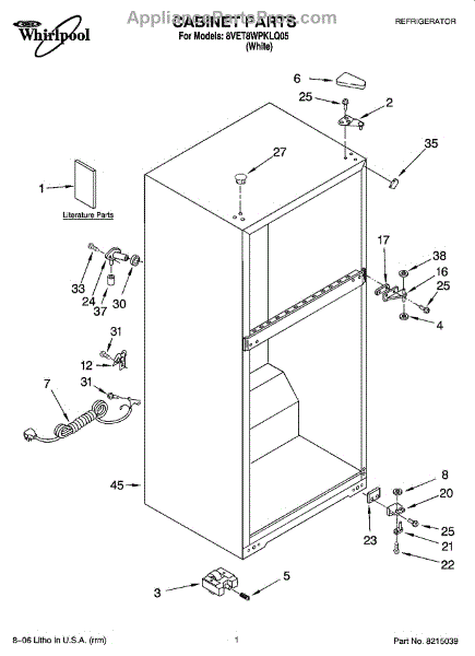 Repair manual for refrigerators and freezers made by Whirlpool. Covered brands include Whirlpool, Sears, Kenmore, Kitchen Aid, Roper, and Estate. Easy to follow photographs and step-by-step repair procedures.