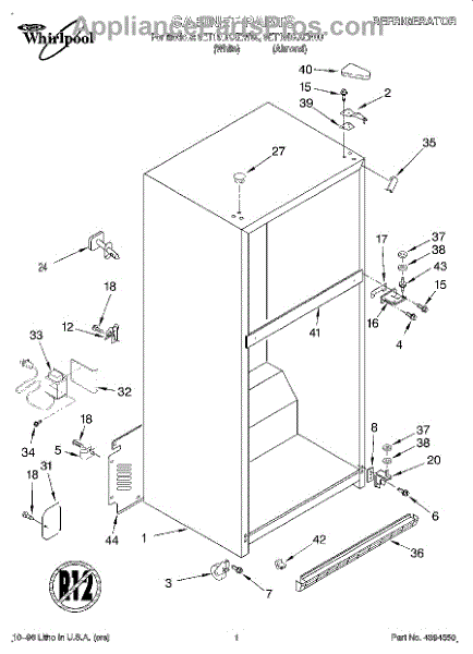 The Hinge Washer is an OEM replacement part for Whirlpool refrigerators. This small washer plays a supports the refrigerator door hinge assembly. Center hinge plastic washer. Causes of a bad hinge washer are generally normal wear and tear from extensive use. As the washer absorbs pressure each time the door is opened or closed, it can gradually deteriorate or crack. Physical damage is also possible if the door is accidentally struck or slammed. Symptoms of a worn or damaged hinge washer include: