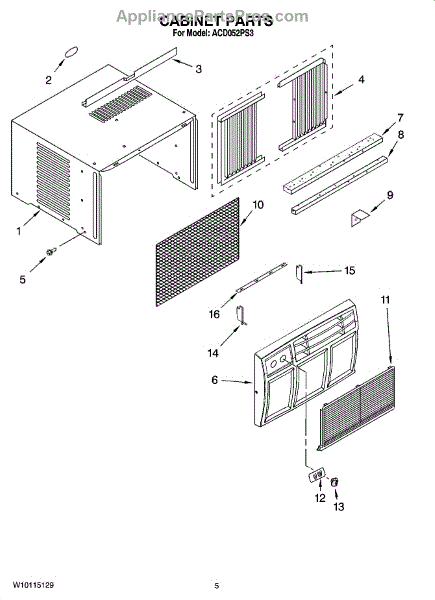 Parts for Whirlpool ACD052PS3: 03 - Cabinet Parts