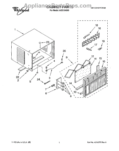 Parts for Whirlpool ACE124XX0: 01 - Cabinet Parts
