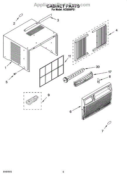 Parts for Whirlpool ACQ058PS1: 03 - Cabinet Parts