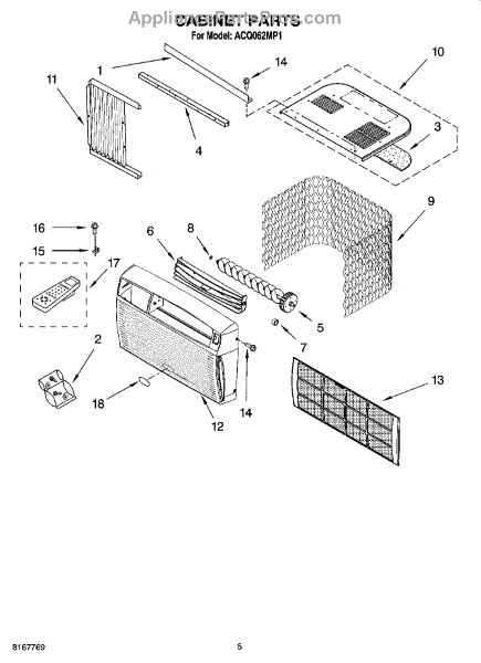 Parts for Whirlpool ACQ062MP1: 03 - Cabinet Parts