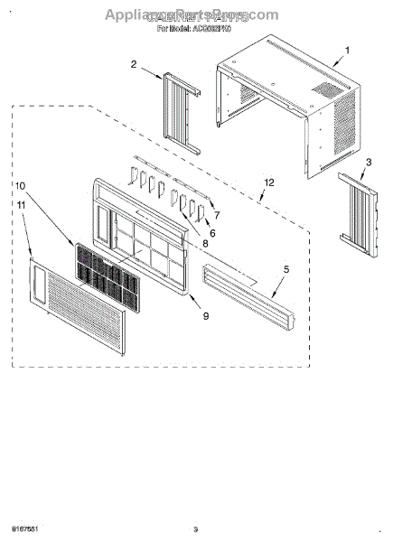 Parts for Whirlpool ACQ062PK0: 03 - Cabinet Parts