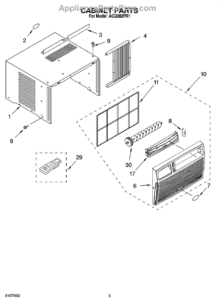 Parts for Whirlpool ACQ082PR1: 03 - Cabinet Parts