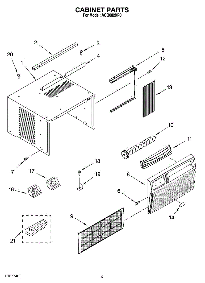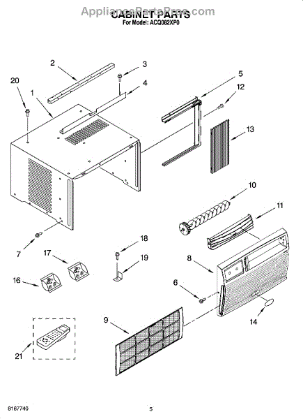 Parts for Whirlpool ACQ082XP0: 03 - Cabinet Parts