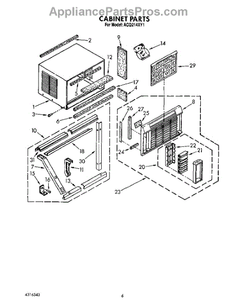 Parts for Whirlpool ACQ214XY1: 04 - Cabinet Parts