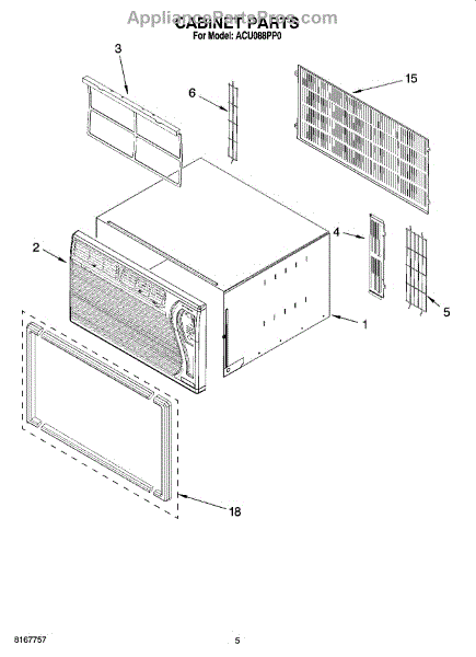 Parts for Whirlpool ACU088PP0: 03 - Cabinet Parts