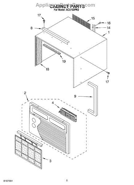 Parts for Whirlpool ACU102PK0: 03 - Cabinet Parts