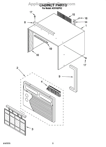 Parts for Whirlpool ACU102PK2: 03 - Cabinet Parts