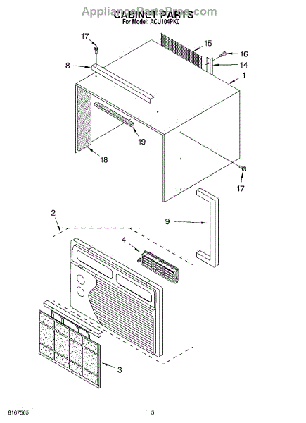 Parts for Whirlpool ACU104PK0: 03 - Cabinet Parts