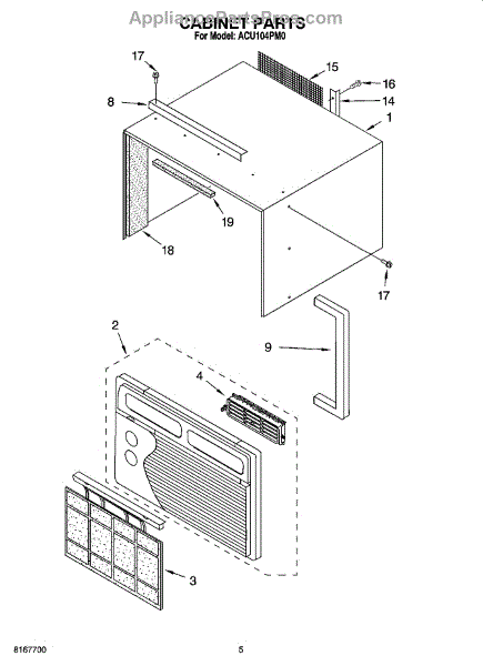 Parts for Whirlpool ACU104PM0: 03 - Cabinet Parts