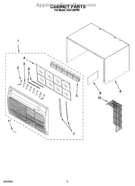 Parts for Whirlpool ACU109PR0: 03 - Cabinet Parts