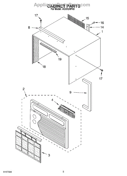 Parts for Whirlpool ACU124PK0: 03 - Cabinet Parts