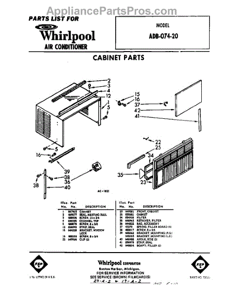 Parts for Whirlpool ADB07420: 01 - Cabinet Parts