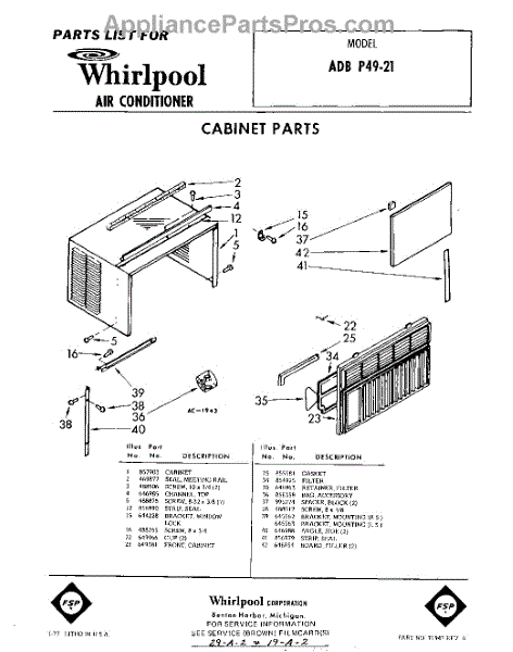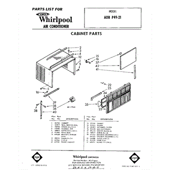 Parts for Whirlpool ADBP4921: 01 - Cabinet Parts