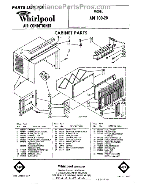 Parts for Whirlpool ADF10020: 01 - Cabinet Parts