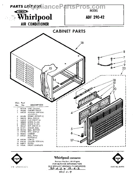 Parts for Whirlpool ADF29042: 01 - Cabinet Parts