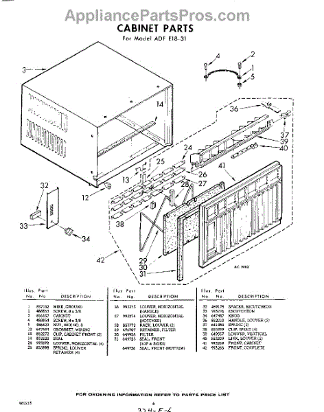 Parts for Whirlpool ADFE1831: 06 - Cabinet Parts
