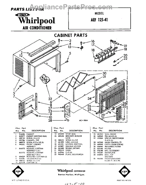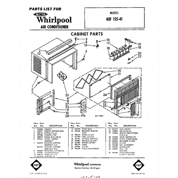 Parts for Whirlpool AEF12541: 01 - Cabinet Parts