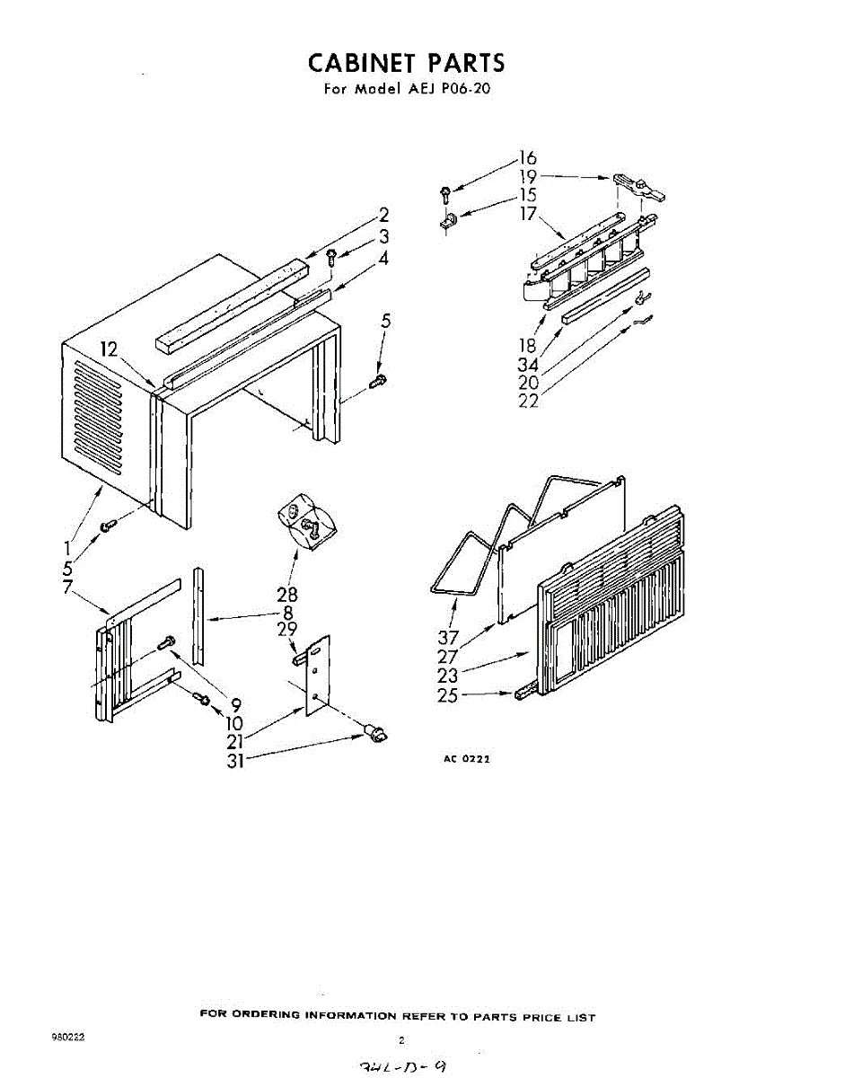 Parts for Whirlpool AEJP0620: 02 - Cabinet Parts