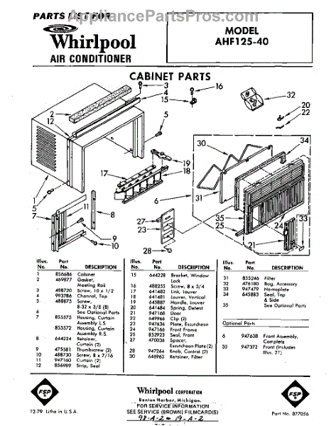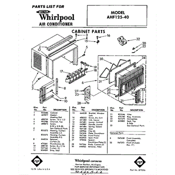 Parts for Whirlpool AHF12540: 01 - Cabinet Parts