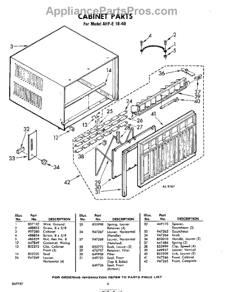 Parts for Whirlpool AHFE1840: 06 - Cabinet Parts