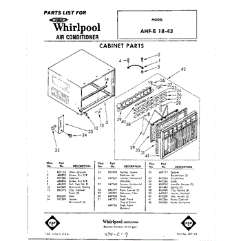 Parts for Whirlpool AHFE1843: 01 - Cabinet Parts