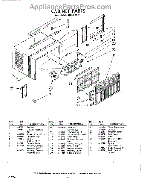 Parts for Whirlpool AHJP0520: 06 - Cabinet Parts