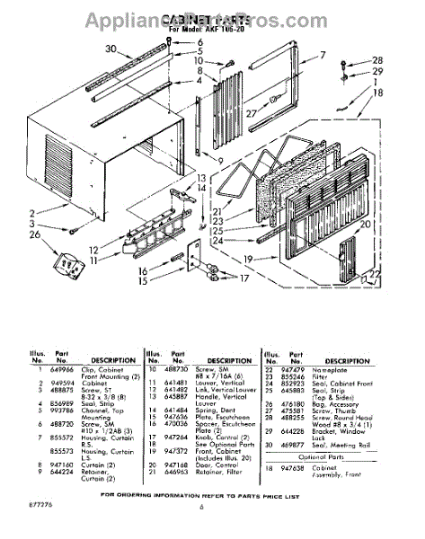 Parts for Whirlpool AKF10520: 06 - Cabinet Parts