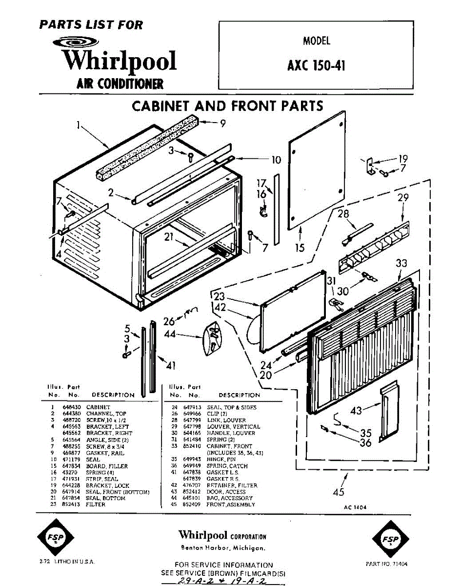 Parts for Whirlpool AXC15041: 01 - Cabinet Parts