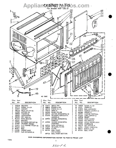 Parts for Whirlpool AXF13021: 02 - Cabinet Parts