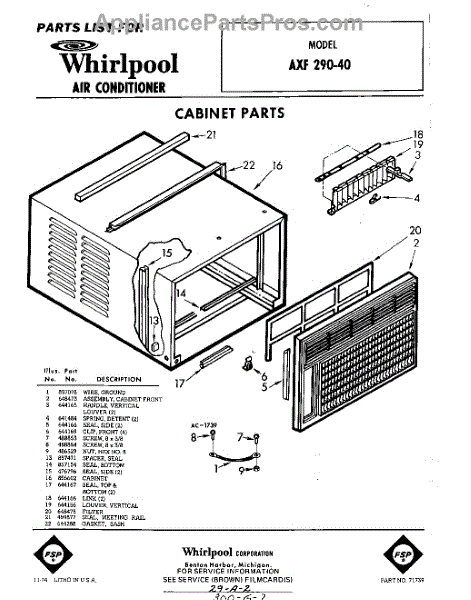 Parts for Whirlpool AXF29040: 01 - Cabinet Parts