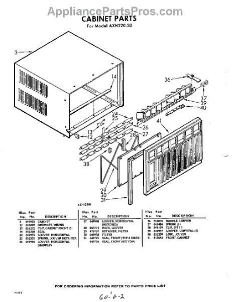 Parts for Whirlpool AXH22030: 02 - Cabinet Parts
