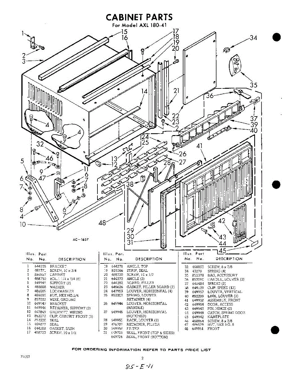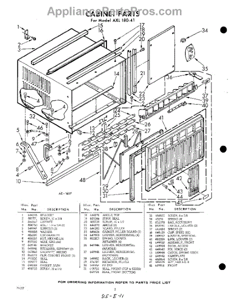 Parts for Whirlpool AXL18041: 02 - Cabinet Parts