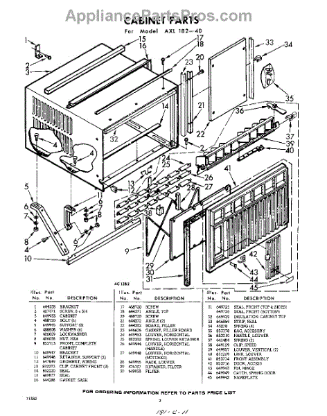Parts for Whirlpool AXL18240: 02 - Cabinet Parts