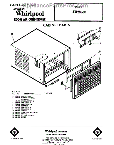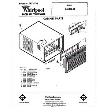 Parts for Whirlpool AXL28031: 01 - Cabinet Parts