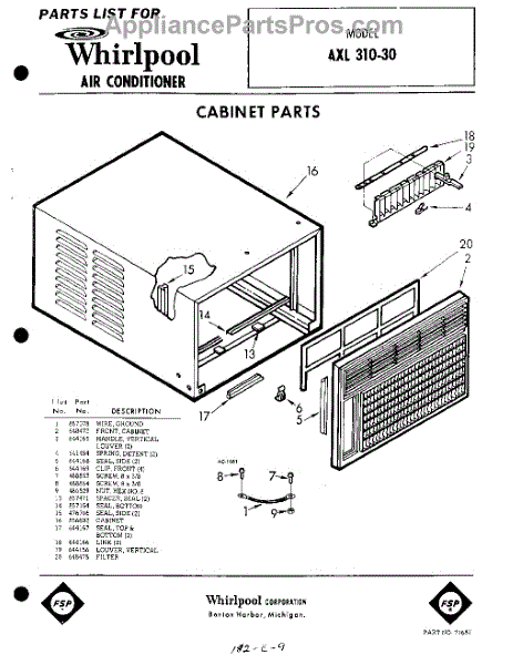 Parts for Whirlpool AXL31030: 01 - Cabinet Parts