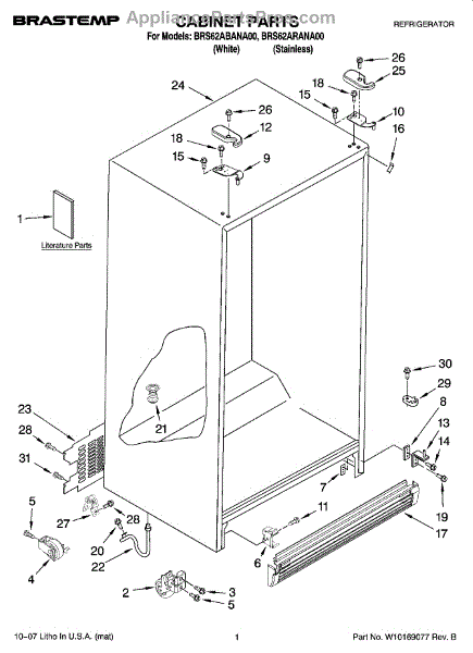 This bottom hinge plate mounts at the base of the refrigerator cabinet to anchor the lower door hinge. Replacing a worn or bent plate restores smooth door swing and a reliable seal for consistent cooling performance.